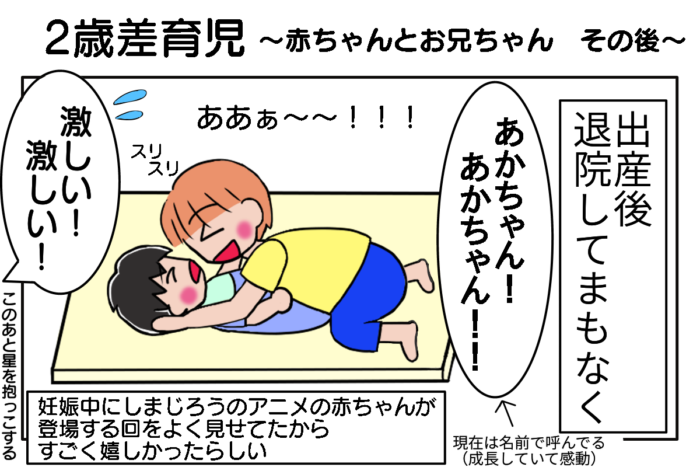 妊娠中だし、赤ちゃんがでてくる回をみて「赤ちゃんってかわいいね」「もうすぐお兄ちゃんになるね」と声かけしていました。